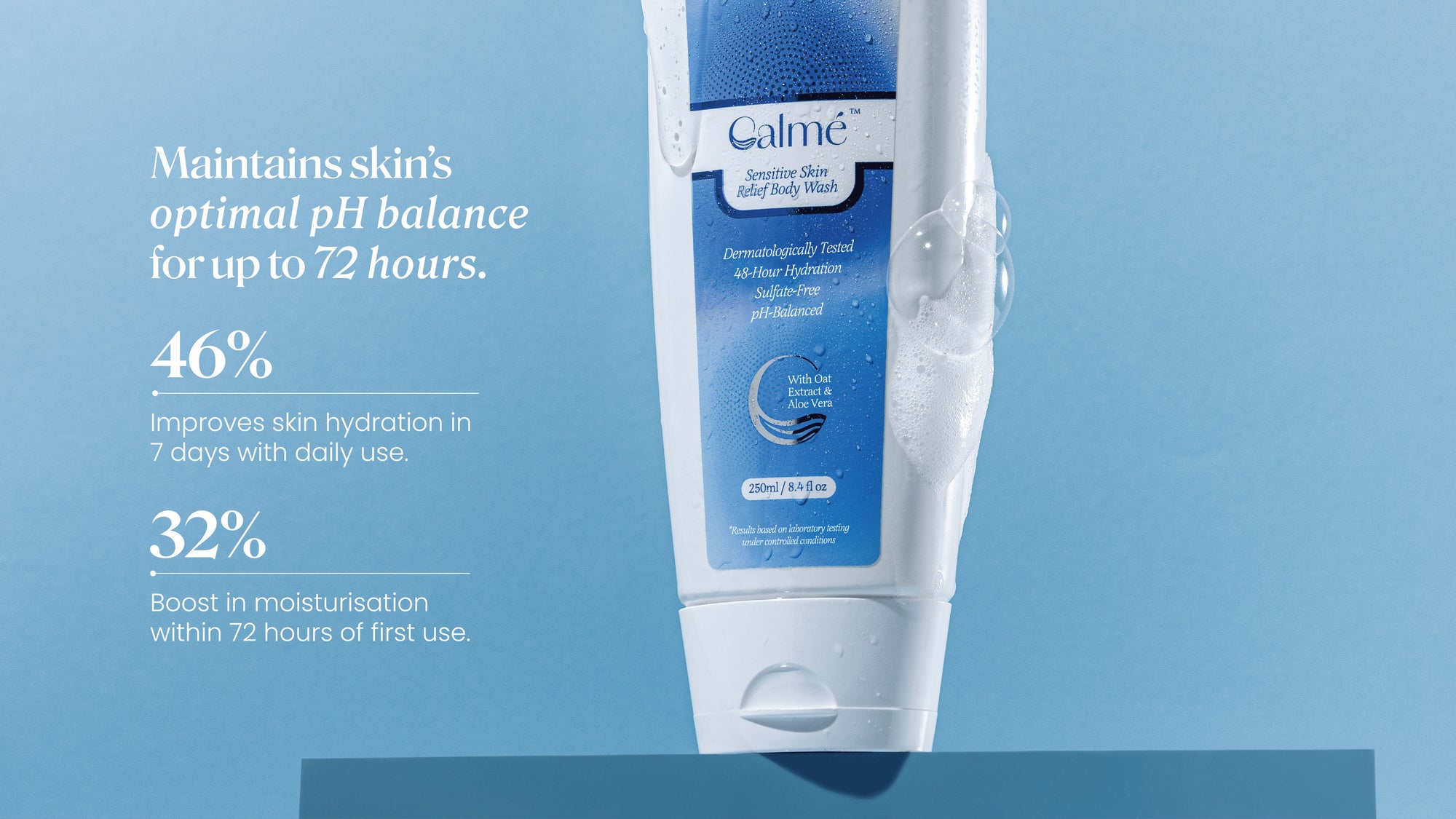 It is free from parabens, phthalates, synthetic dyes, fragrances, mineral oil, and other potential irritants. It's vegan, cruelty-free, and formulated with sustainability in mind. Embrace the calm and give your sensitive skin the gentle, effective care it deserves with Calme Sensitive Skin Relief Body Wash